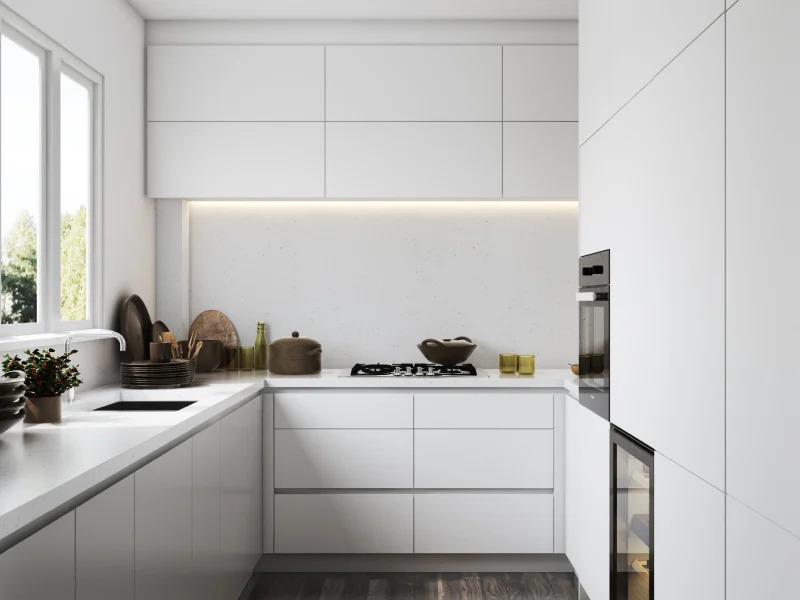 Vivid White U-Shaped Modular Kitchen Size | 13' X 12'